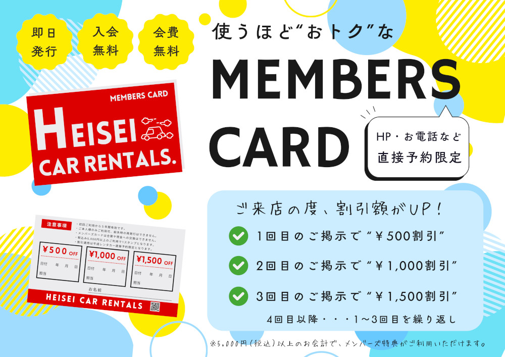 平成レンタカーで借りるほどお得になるメンバーズカードを2025年11月1日より開始いたします。