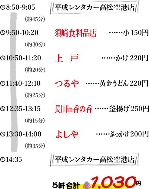 名店ひしめく香川県西部の人気店を巡るコースです。
